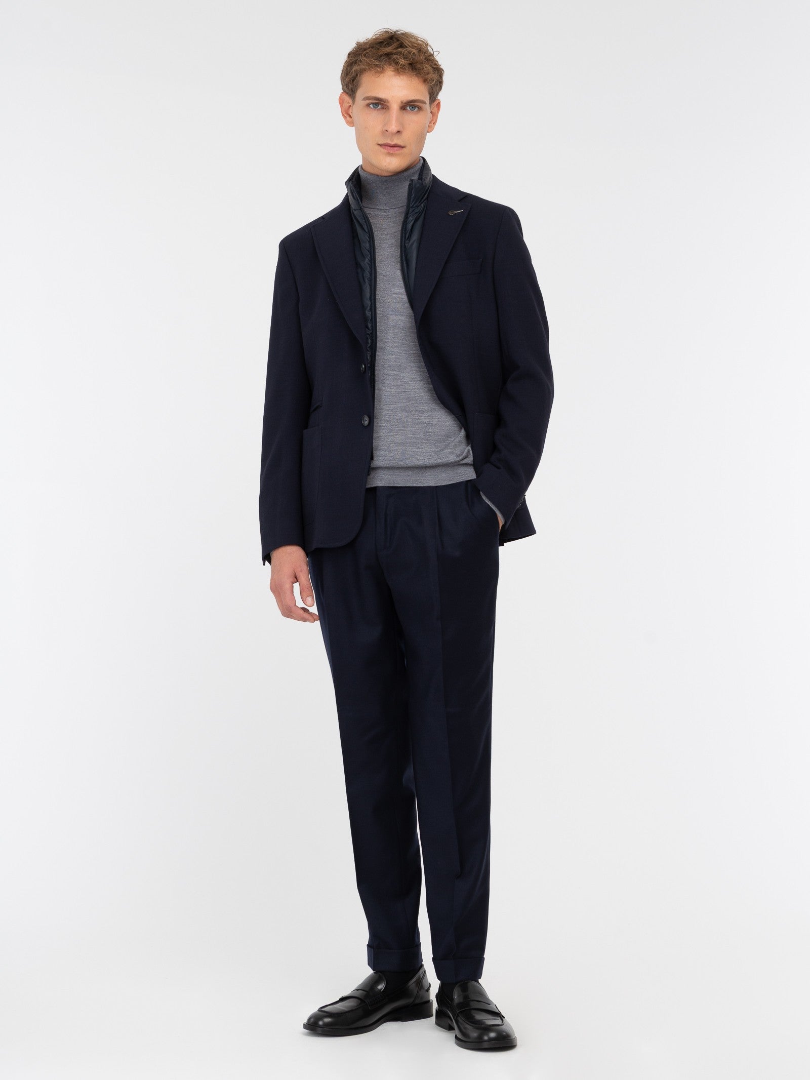 DESCRIZIONEDolcevita in pura lana, finiture a costine. Rasato in pura lana vergine merinos