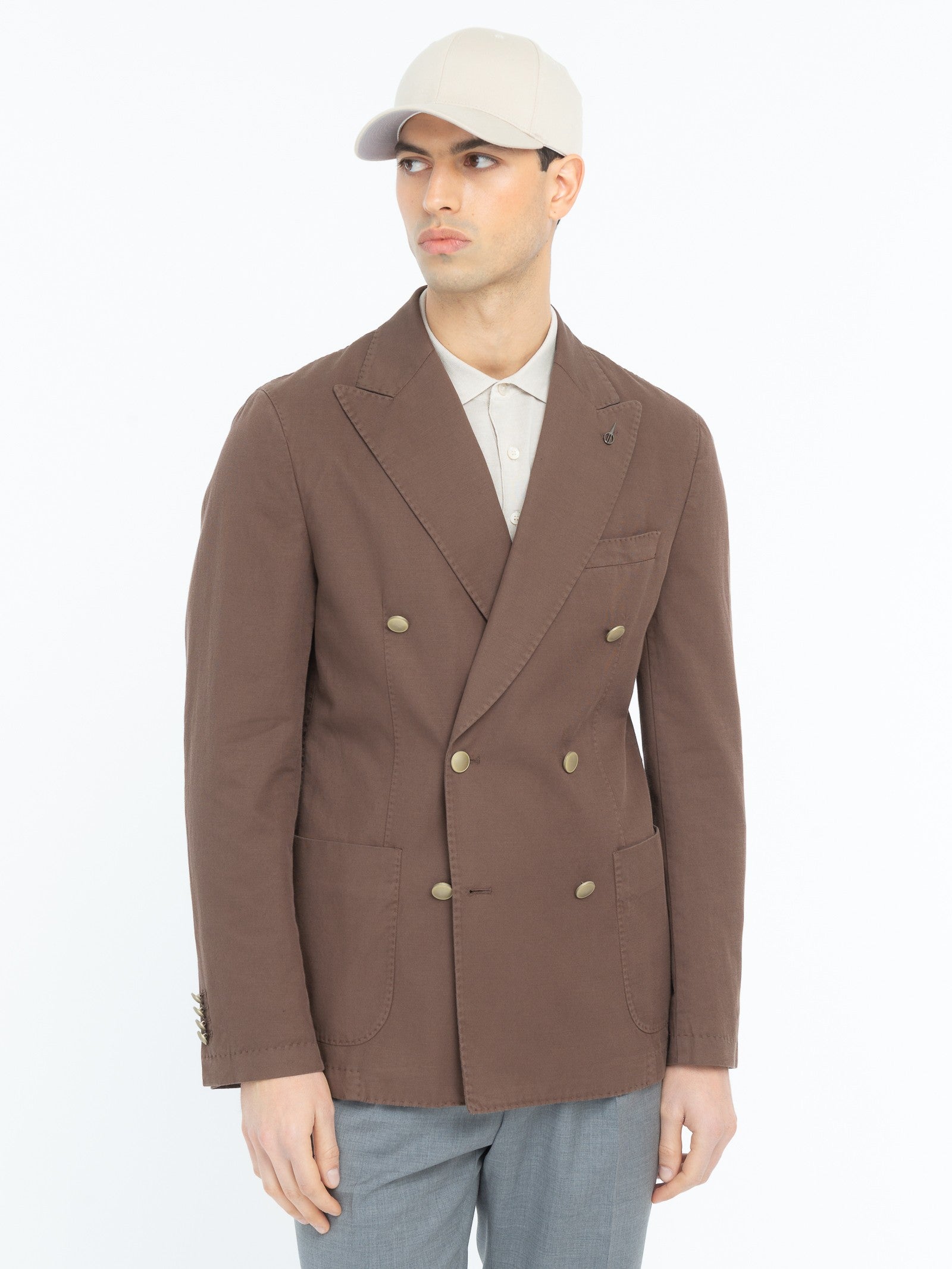 Giacca doppiopetto tinta misto cotone lino stretch