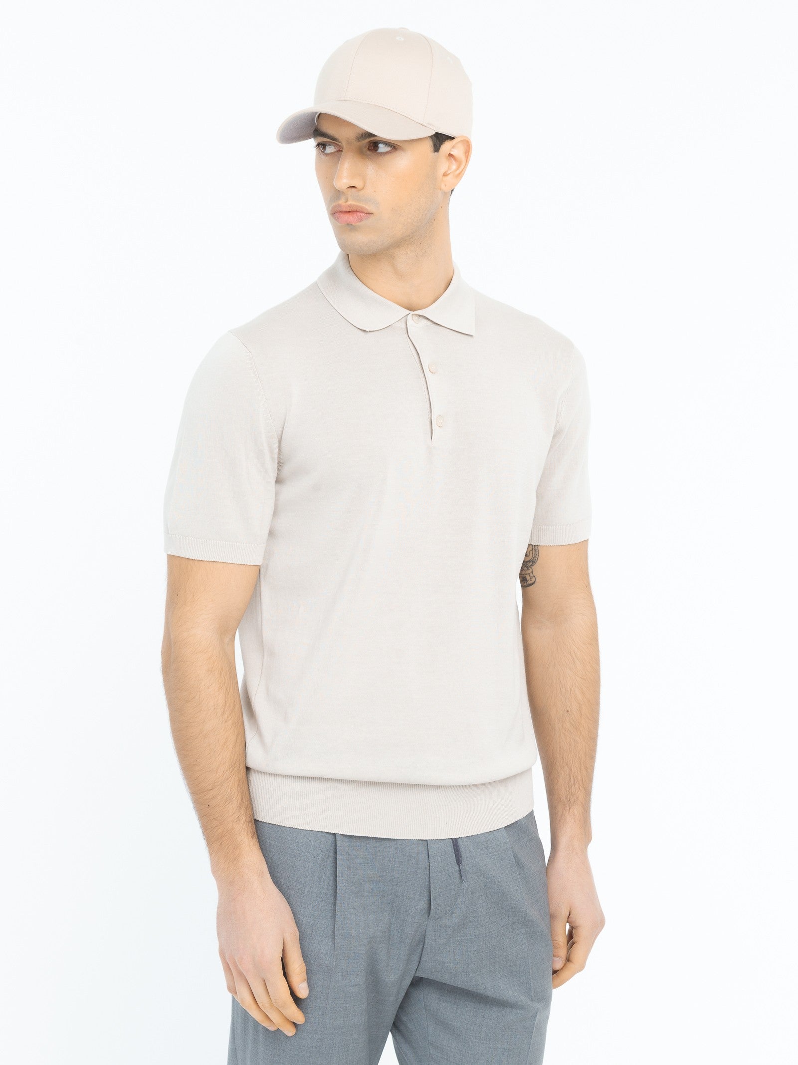 DESCRIZIONEPolo in maglia manica corta, chiusura tre bottoncini, finiture a costine. Jersey di cotone