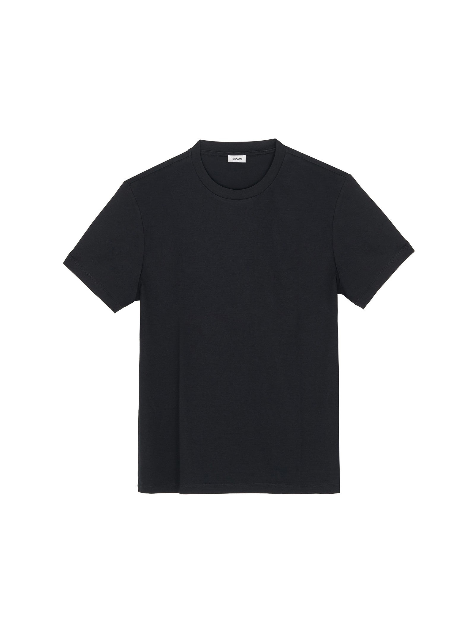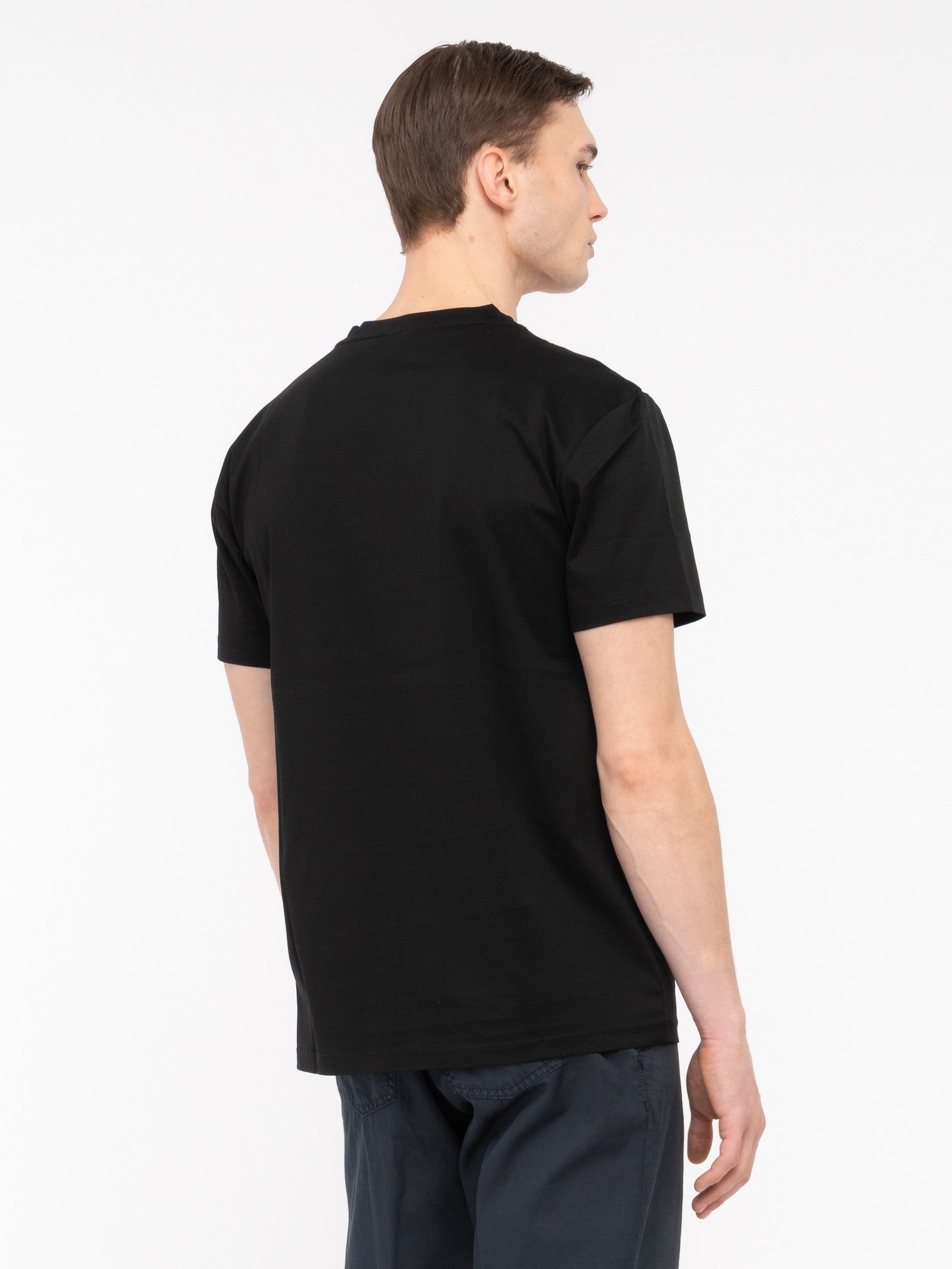 T-shirt girocollo in cotone, costina su collo in tinta. Jersey di cotone