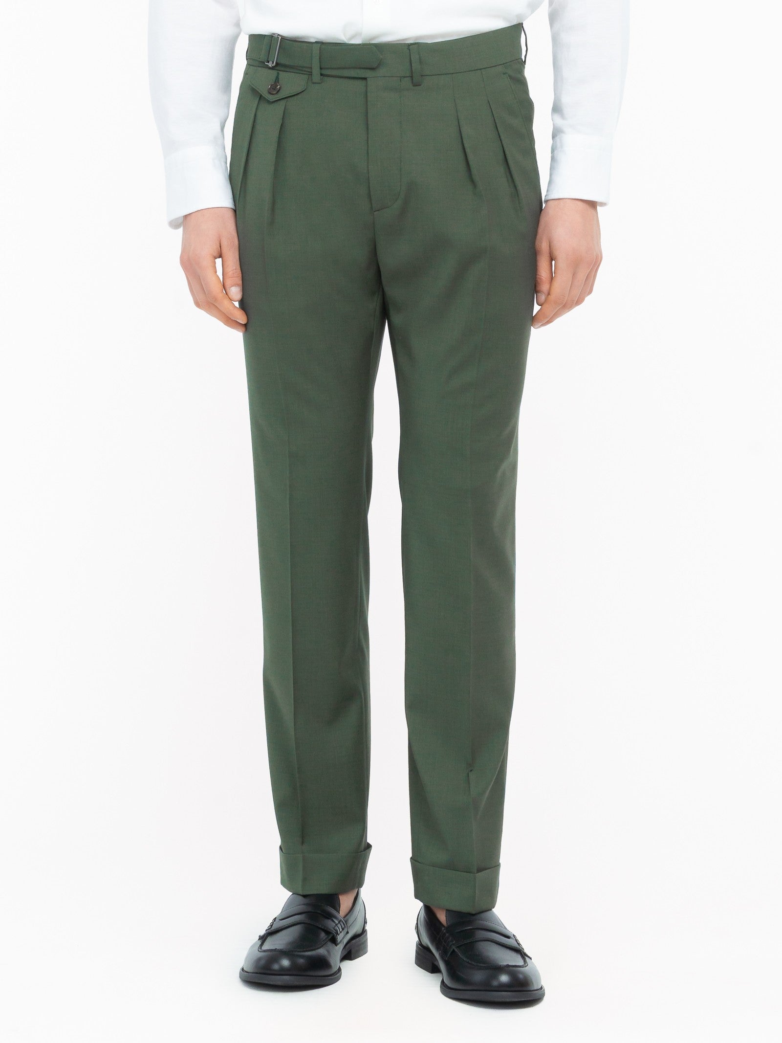 Pantalone doppia pinces fresco di lana stretch 44 / VERDE
