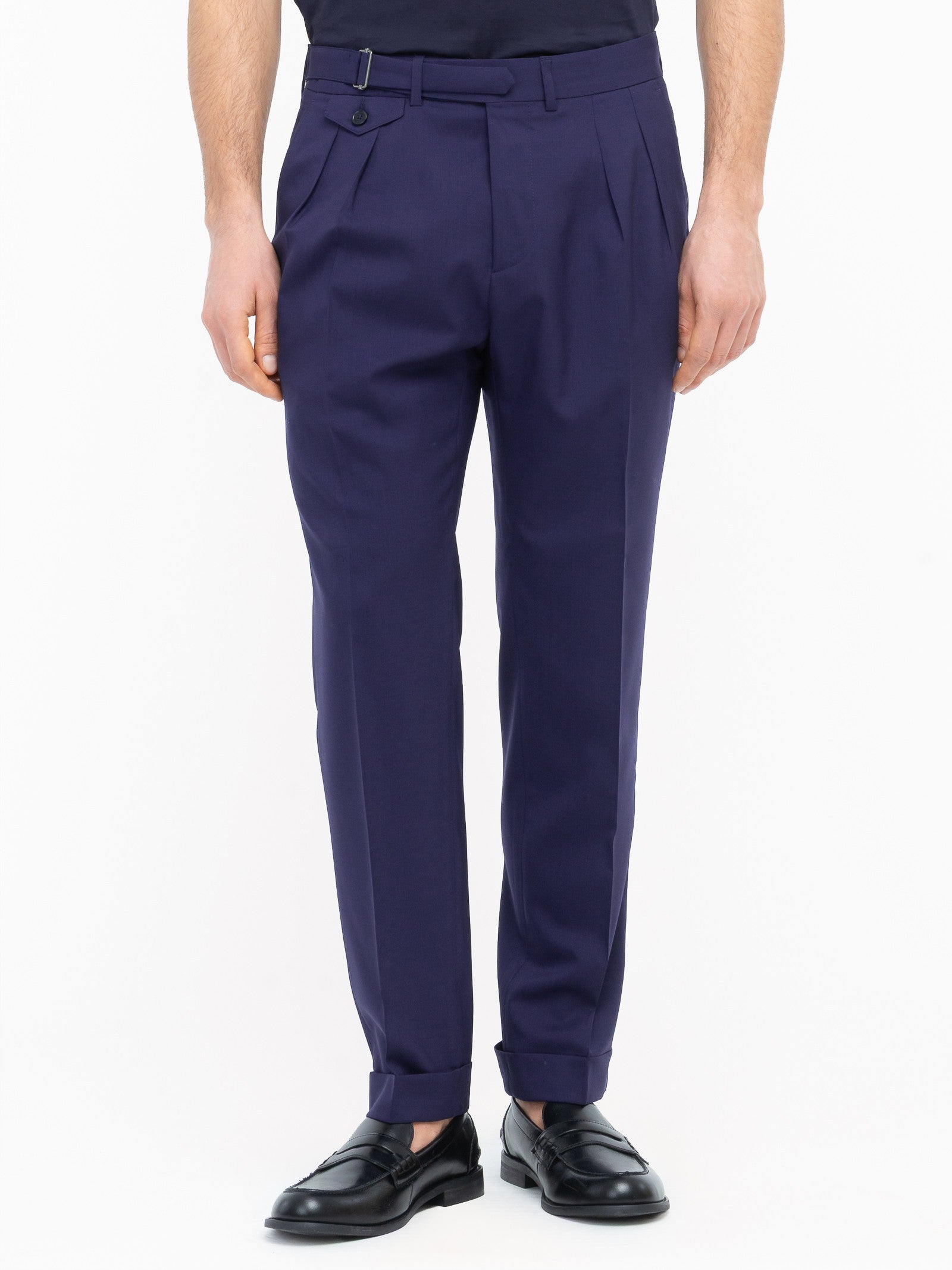 Pantalone doppia pinces fresco di lana stretch 44 / BLU